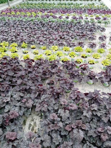 - Blattschmuckstauden, z.B. Heuchera und herbstblühende Stauden