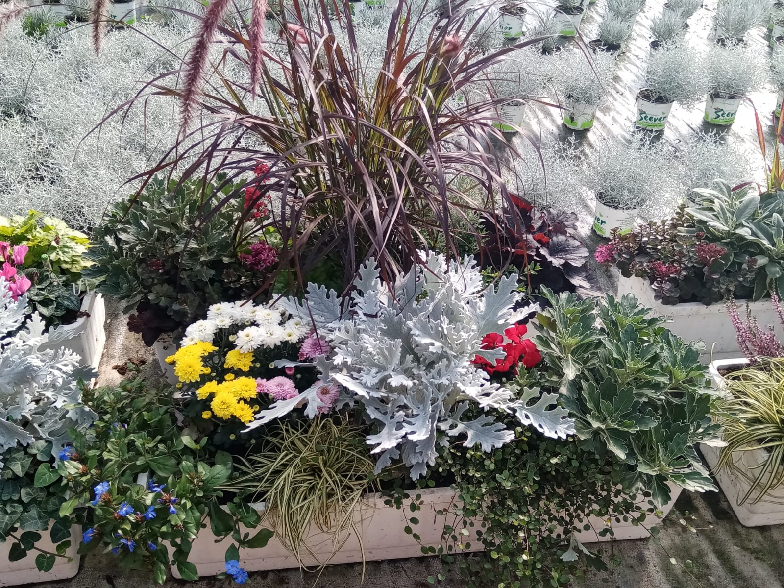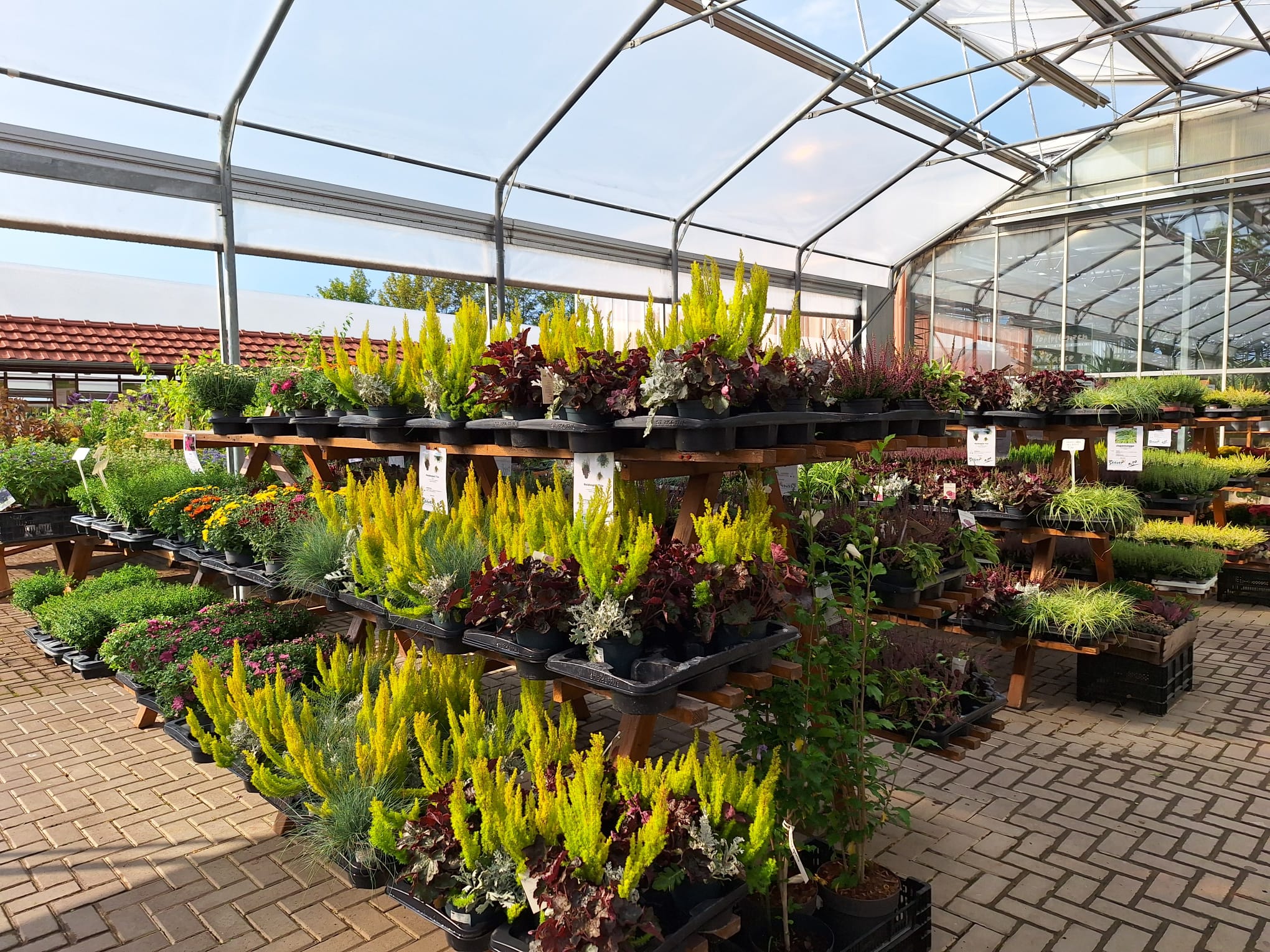 - Beet- und Balkonpflanzen, wie die Klassiker Pelargonie und Fuchsie, aber auch besondere Begonien, farbenfrohe Petunien und Strukturpflanzen, die durch ihr besonderes Laub bestechen