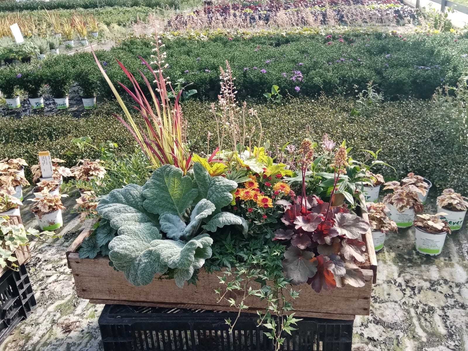 - Blattschmuckstauden, z.B. Heuchera und herbstblühende Stauden